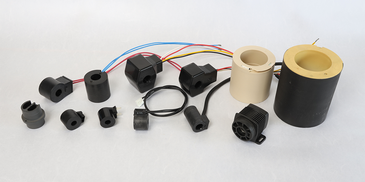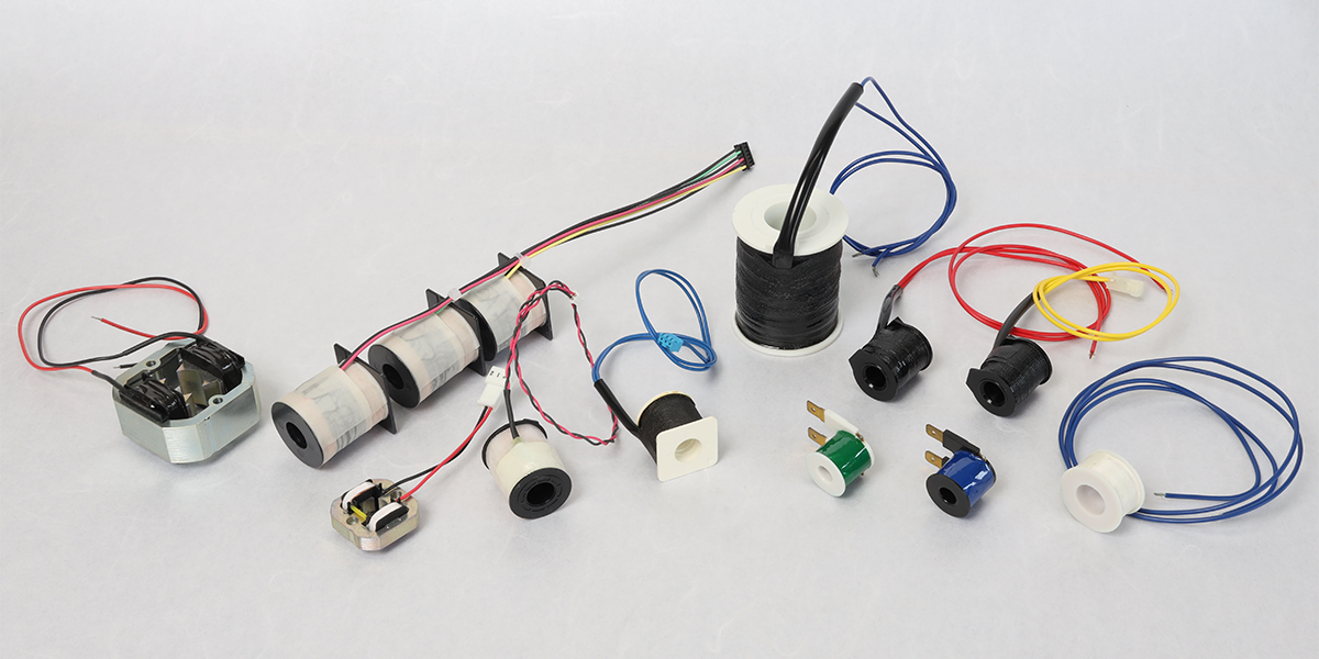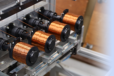石川電気は磁性材料・各種コイル製造を中心にボビン成型(端子方式含む)、コイル巻線(空芯・自動機対応)、封止成型(樹脂モールド・封止モールド)の一貫生産体制を行なっています。